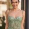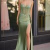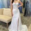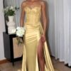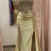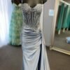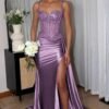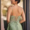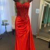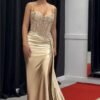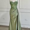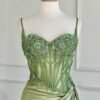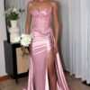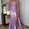 This mermaid prom dress features delicate spaghetti straps paired with a fitted satin bodice that follows the natural shape of the body. The silhouette gradually flares at the hem, creating graceful movement while maintaining a sculpted look. The satin fabric feels smooth against the skin and holds its structure throughout long events. Designed for prom nights and formal occasions, this dress balances elegance and comfort with a refined, polished appearance.